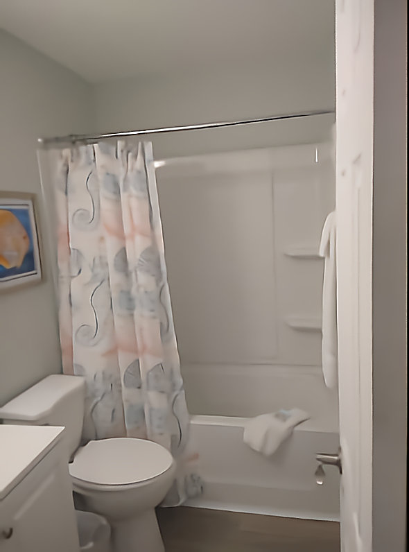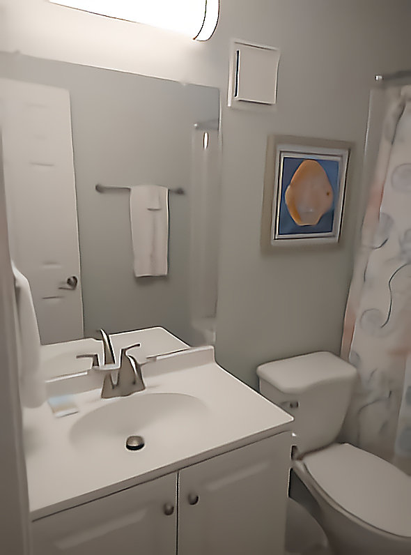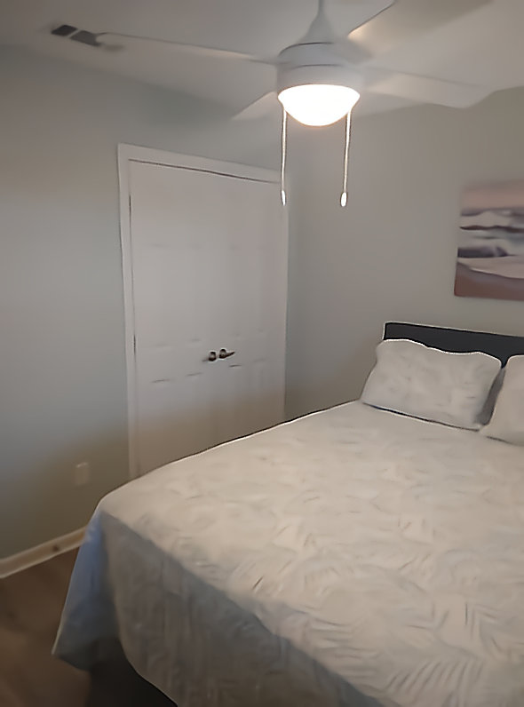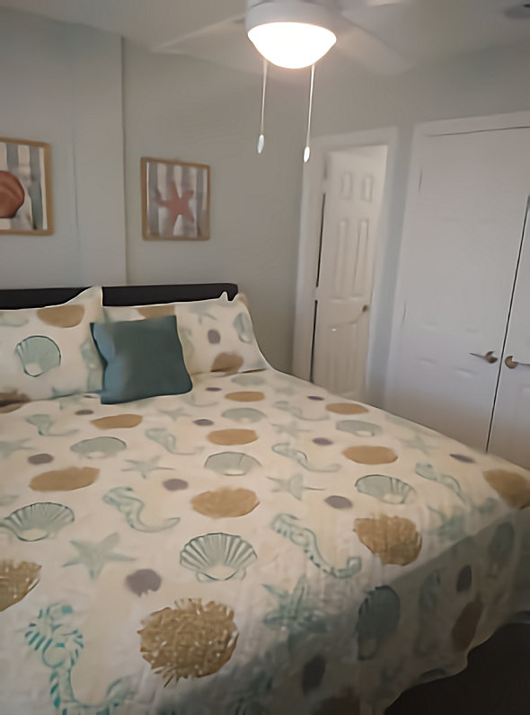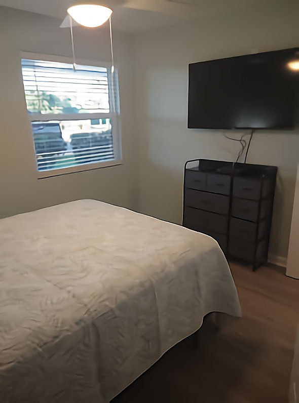 - The guest bedroom has a queen sized bed with flat screen TV and full sized bath.