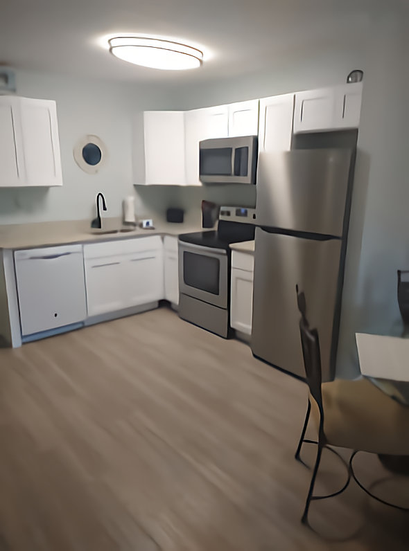 - All the kitchen appliances are stainless steel and the counter tops are granite.