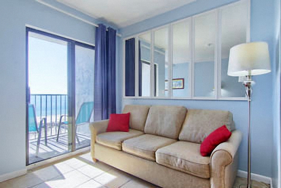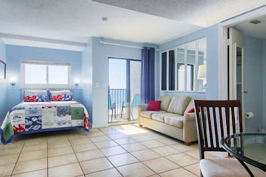 Living Room & Queen bed & Qeen sleeper with view of gulf