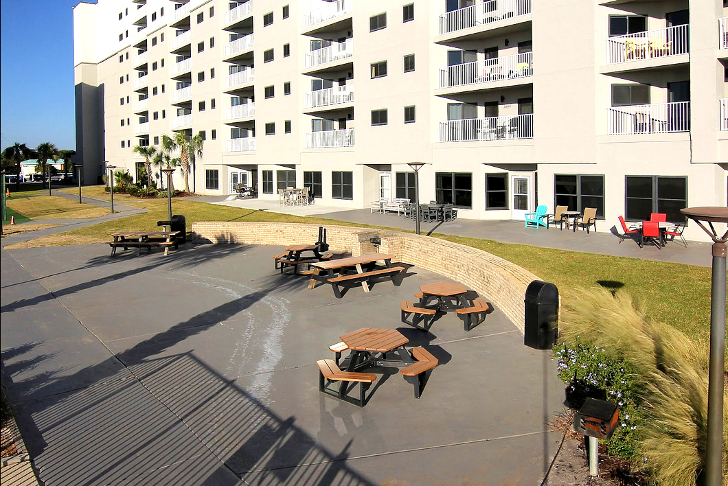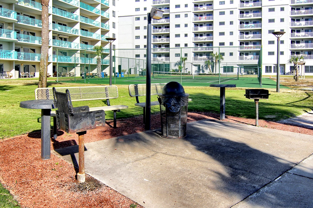 NUMEROUS GRILLS AND PICNIC TABLES AVAILABLE TO ALL ON THE WEST SIDE OF THE DUNES BUILDING